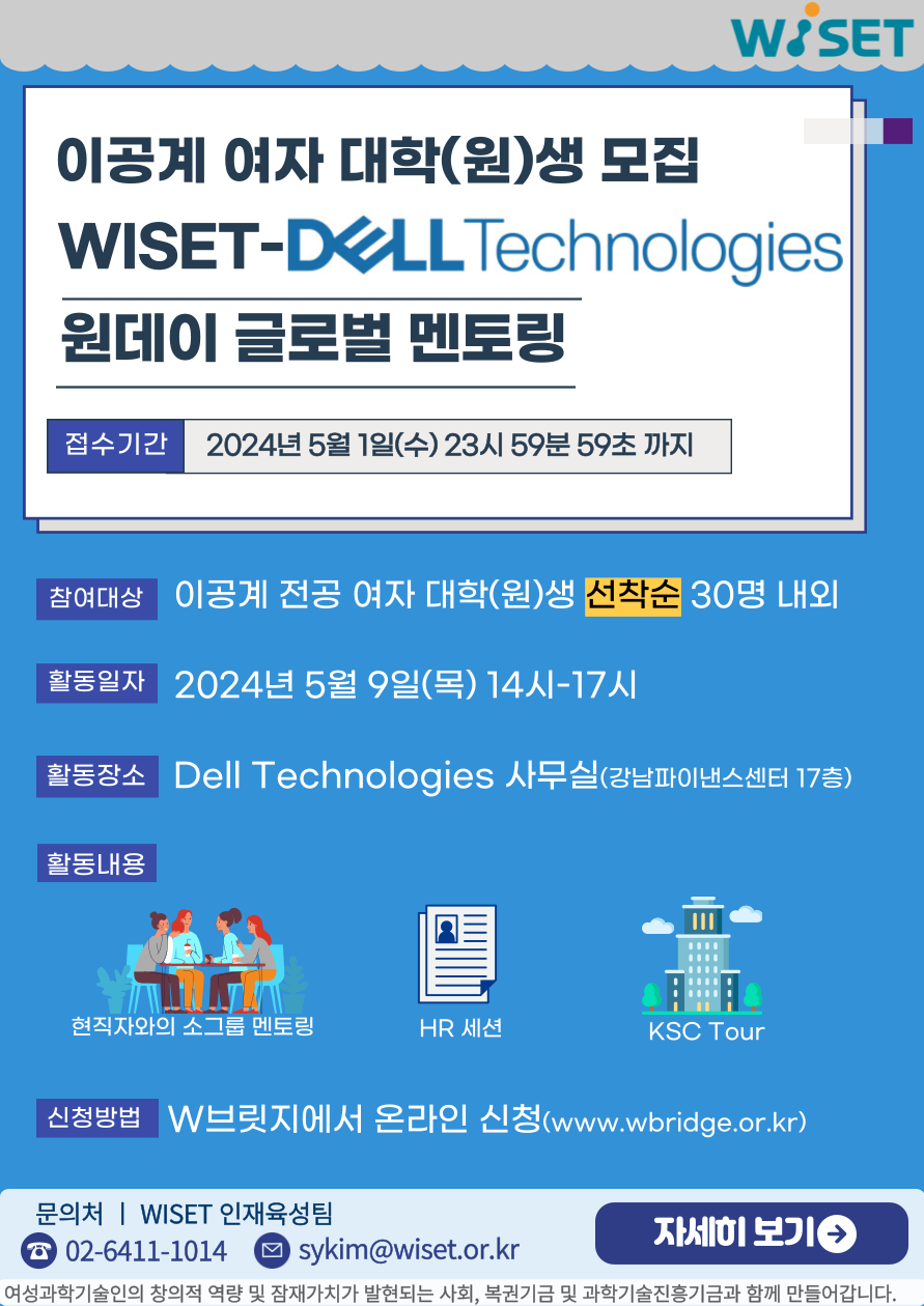 □ 문의처 : WISET 인재육성팀(02-6411-1014, sykim@wiset.or.kr)