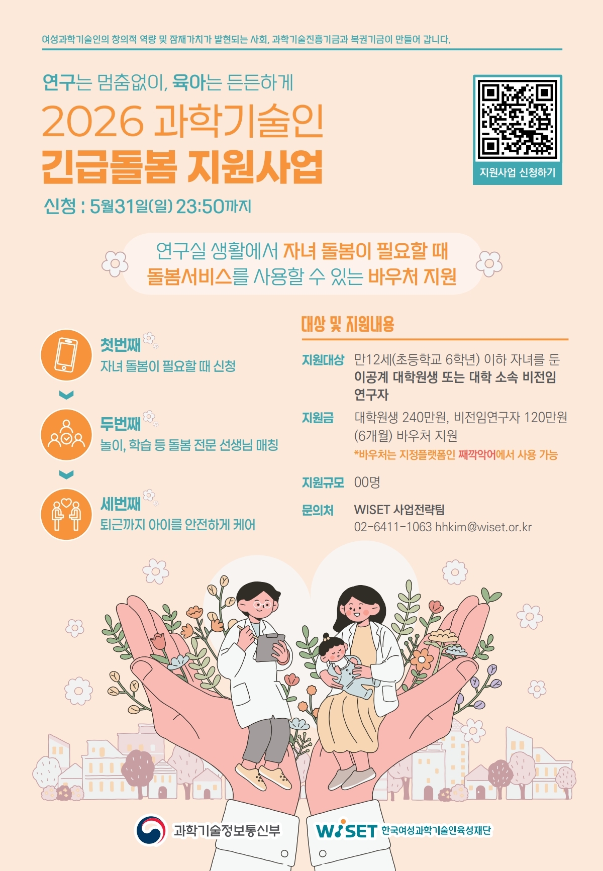 「2026년 과학기술인 긴급돌봄 지원사업」의 2차 참여자 모집을 다음과 같이 공고합니다.